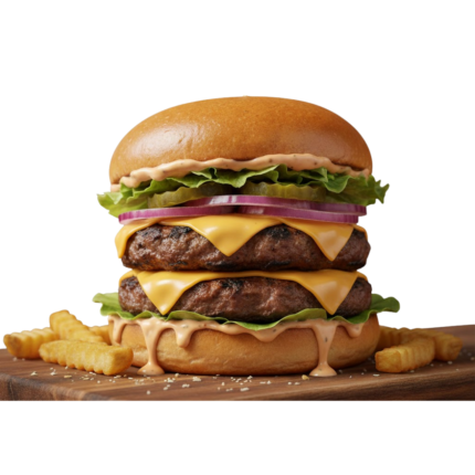 GRILLED CHICKEN WITH PERI PERI SAUCE, CHEDDAR CHEESE, PICKLE, YUMMY SAUCE, ONION, LET TUGE
